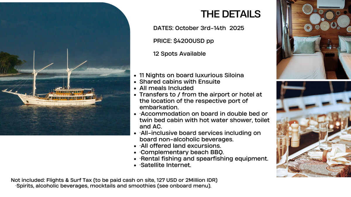 Escape to the dreamy Telo Islands with Siloina Charters—where perfect waves, sun-soaked days, and girl-powered vibes await. Are you ready for the ultimate surf trip of a lifetime?